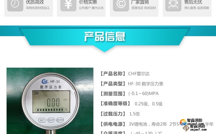 數字壓力表量程0-20MPa,精度0.4級測試消火栓用30. 細水霧末端試水裝置壓力表量程:0MPa~0.6MPa;精度:0.4級安裝在系統管網或分區管網的末端,檢驗系統啟動。